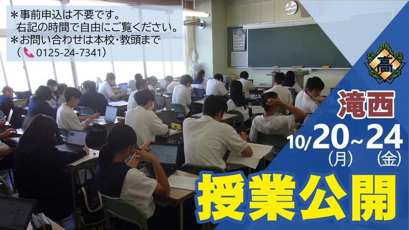 10 月20 日(月)~10 月24 日(金)の期間、後期公開授業週間を実施します。