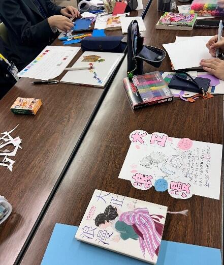 2日目は分科会に分かれ実際に文学館へ行き図書の形態による見え方について学んだり、実際に小学校の図書室に置くことを想定したPOPを作成したりしました。