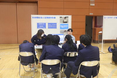 2月25日(水)赤平市総合体育館アリーナで行われた赤平市合同企業説明会に2年生33名(民間就職と公務員希望者)参加してまいりました。2年生は、いよいよ進路を決めていく段階に入ってきましたので真剣に企業の方々の説明を聞いていました。3者面談に向けて一層、各企業や進路先を決めるうえでのきっかけにして欲しいと思います。この説明会の企画や企業側においても本校OBが活躍していました。お世話になりました。