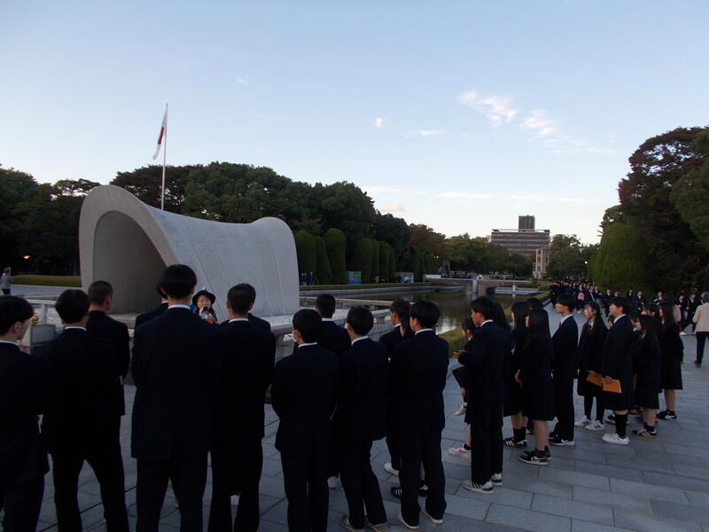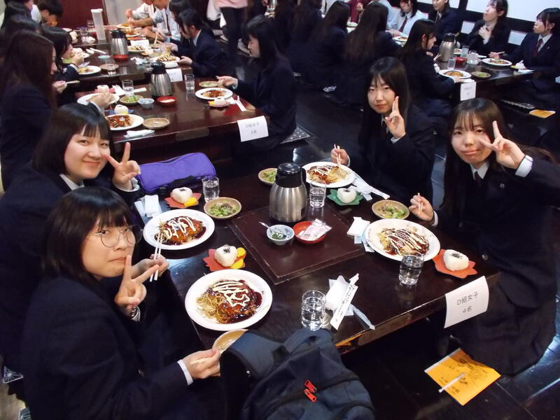 初日は、滝川西高校~新千歳空港~羽田空港~広島空港~平和記念資料館と移動が多い中でしたが、平和記念資料館では事前学習を活かし、しおりに感想を記入する生徒が多く見られ学習旅行として取り組んでいる姿が見られました。夕食は「むすびのむさし」でお好み焼きとむすび(おにぎり)をいただき、生徒も満足感を得ていたようです。